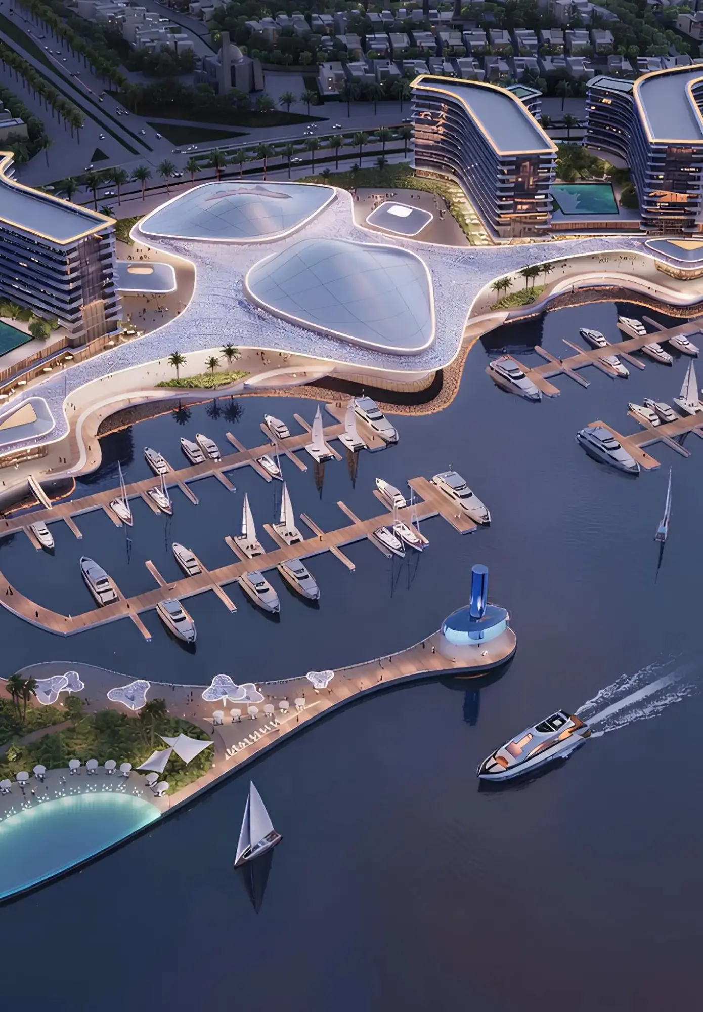 Prime Waterfront Position Two towers set along a promenade offering uninterrupted canal views and seamless indoor-outdoor living experiences.