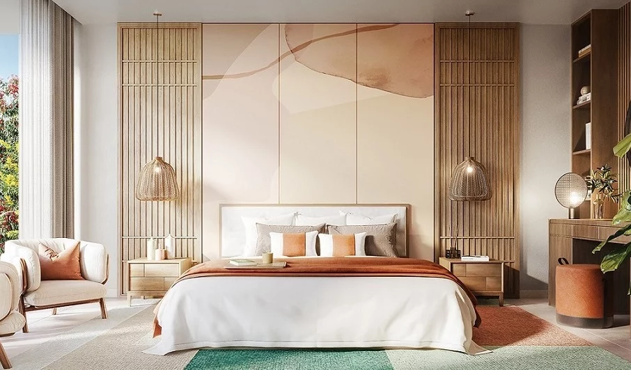 The total number of premium units in this phase of the community is 146. Each residence will have a contemporary design that combines elegant aesthetics with traditional country-style features. Villas will be available in two styles, Horizon and Earth, both of which have been influenced by the surrounding landscape of lush palm trees, a ghaf forest, and the desert majlis.
